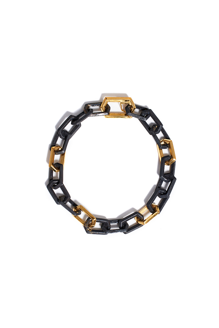 Kontrast renkleriyle öne çıkan zamansız zincir bileklik.