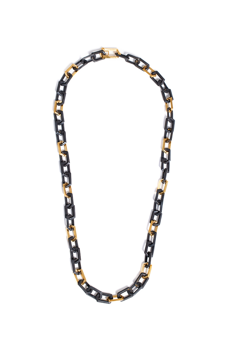 Altın ve siyah renk petek şeklinde halkaların ritmik geçişiyle hareket kazanan Hive Kolye, güçlü ve modern bir stil sunar.