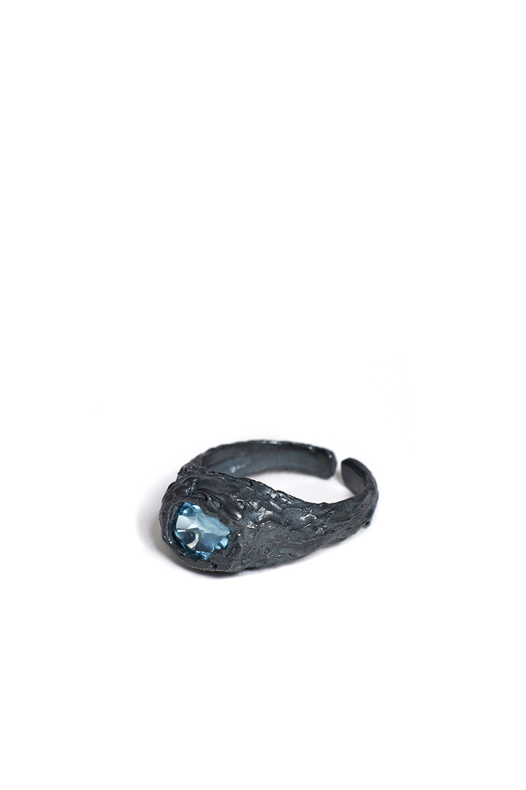 Blue sky topaz kullanılmıştır. Özgürlük ve hafiflik duygusuyla bilinen, enerjik bir yarı değerli taştır.