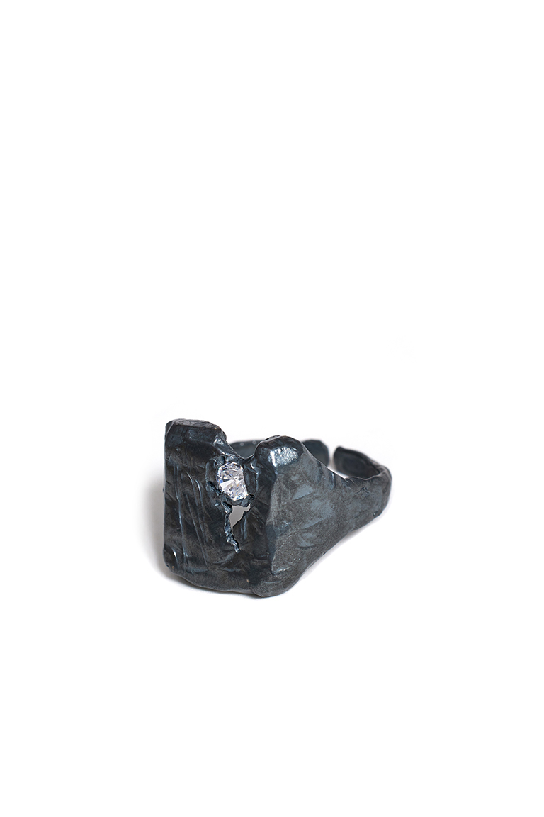 925 ayar oksit karartmalı gümüş yüzük, zirkon taş kullanılmıştır.